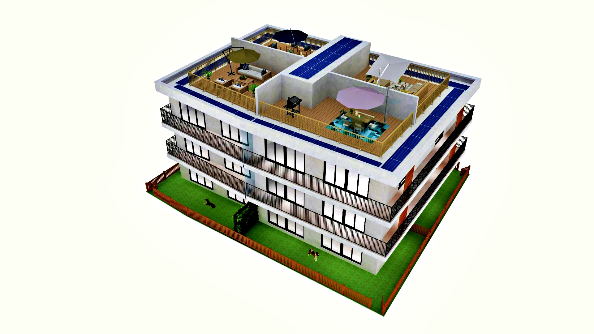 屋上ではちょっとしたパーティーやバーベキュー等ができ、また、晴れた日にはリモートワークもできる空間にしています。